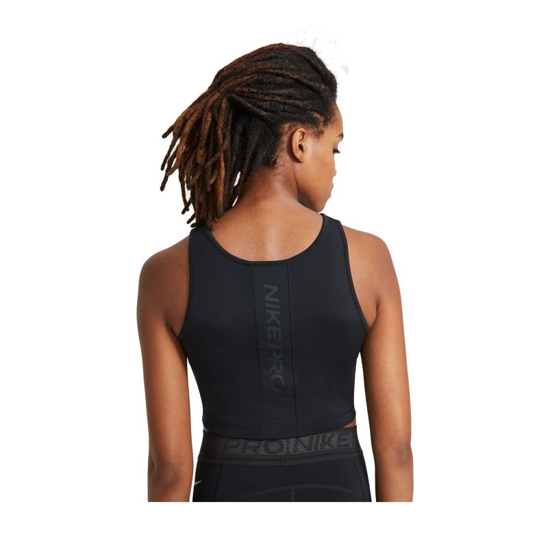Nike „Pro Tank Top“ marškinėliai sugeria prakaitą, kad išliktumėte sausi ir vėsūs intensyviausių treniruočių ir varžybų metu. Tamprus dizainas su tinklinėmis detalėmis pagamintas iš mažiausiai 50 % perdirbto poliesterio, užtikrinančio komfortą ir judėjimo laisvę visos treniruotės metu. Tinklinė juosmens juosta pagerina kvėpavimą karštose vietose, padėdama išlikti vėsiems, kai treniruotė įkaista. Įmontuota liemenėlė suteikia atramą ir minkštą pojūtį. Aukšta iškirptė dengia lenkiantis ir tempiantis, o trumpintas ilgis neleidžia maudymosi palaidinės apačiai susiglamžyti.