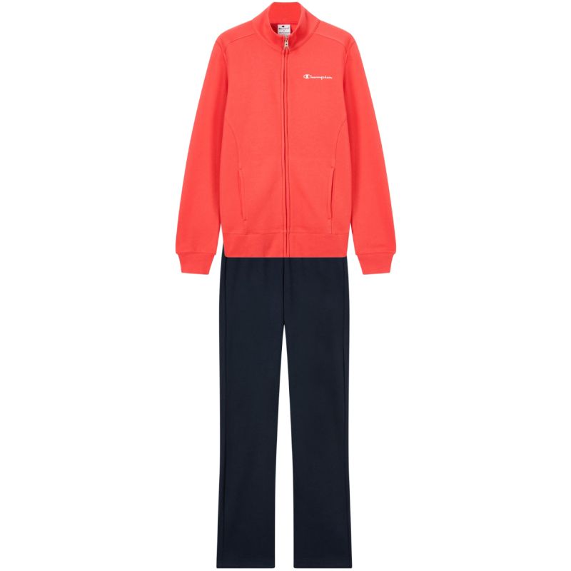 Champion moteriškas sportinis kostiumas su užtrauktuku, oranžinės ir tamsiai mėlynos spalvos, 118289 RS073. Champion moteriškas sportinis kostiumas puikiai tinka kasdieniam dėvėjimui. Minkštas audinys su dideliu medvilnės kiekiu. Pridėta poliesterio pluoštų. Standartinio kirpimo. Vienpusis užtrauktukas. Briaunoti rankogaliai ir apačia. Atviros kišenės. Kelnės su mažais skeltukais kojose ir reguliuojamu raišteliu sutampančiu juosmeniu. Kelnės be kišenių. Medžiaga: 55% medvilnė, 45% poliesteris.