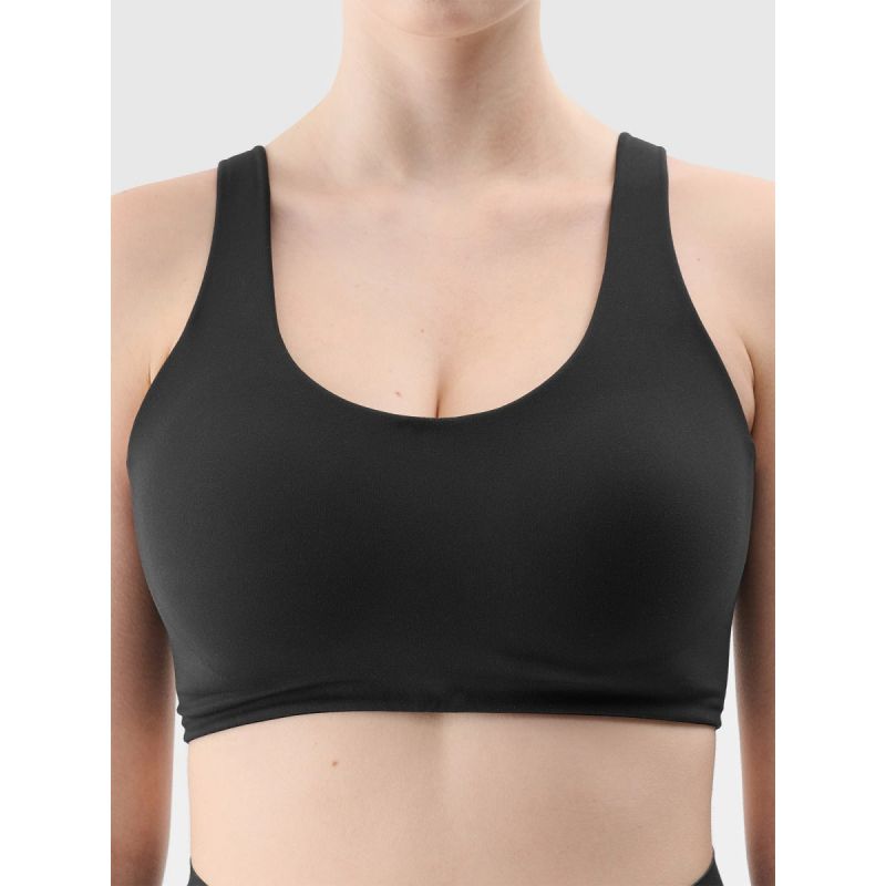 Ši vidutinio prilaikymo treniruočių liemenėlė skirta vidutinio intensyvumo treniruotėms, tokioms kaip bėgiojimas, kardio ir važiavimas dviračiu. Aptemptas dizainas apglėbia kūną, suteikdamas atramą ir judėjimo laisvę, o besiūlė konstrukcija sumažina trinties ir odos sudirginimo riziką. Pagaminta iš patvaraus, bet minkšto susipynusio audinio su lygia tekstūra iš abiejų pusių, ji tvirtai priglunda ir efektyviai sugeria drėgmę. Quick – džiovinantys 4FDry technologijos pluoštai sugeria prakaitą nuo kūno, padėdami išlikti patogiai net ir intensyvesnės veiklos metu. Į liemenėlės konstrukciją integruoti pusiau paminkštinti, lieti kaušeliai , užtikrinantys stabilią atramą, nereikalaujant papildomo reguliavimo. Elastinė juosta po krūtine ir plačios, fiksuotos petnešėlės padidina komfortą ir judesių laisvę, o lazeriu pjauti kraštai gale pagerina estetiką ir komfortą.