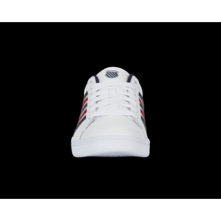 • K-Swiss logotipas: subtiliai uždėtas ant liežuvio, kulno ir šoninės plokštės, pabrėžia prekės ženklo autentiškumą ir prestižą.