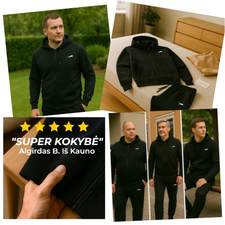 • Aukščiausio patogumo kelnės ir džemperis užtikrins jūsų judesių laisvumą net jei ir leisite laisvalaikį itin aktyviai.