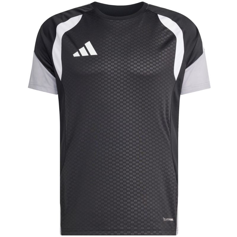 Vyriški „adidas Tiro 26“ treniruočių marškinėliai, juodos, pilkos ir baltos spalvos (JX4254). Šie vyriški „Adidas“ marškinėliai puikiai tinka treniruotėms. Jie yra aptempto kirpimo ir apvalia iškirpte. „CllimaCool“ technologija sugeria ir išsklaido prakaitą, todėl išliksite vėsūs ir sausi. Naudojami perdirbti pluoštai. Reljefinis raštas priekinėje dalyje. Medžiaga: 100 % perdirbtas poliesteris.