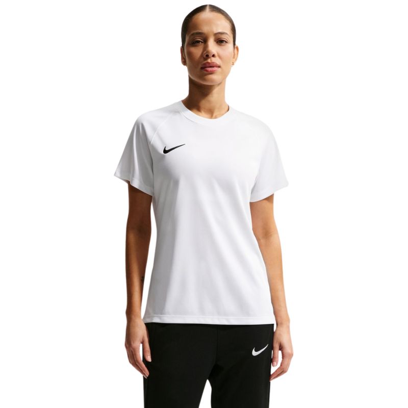 Nike Dri-Fit Park VIII moteriški marškinėliai, balti HV8178 100. Šie Nike marškinėliai puikiai tinka rungtynių dienoms. Įprastas kirpimas. Mažas logotipas. Quick – džiovinantis audinys. Dri-FIT technologija sugeria drėgmę. Tinklinės struktūros audinys nugaroje. Medžiaga: 100 % poliesteris.