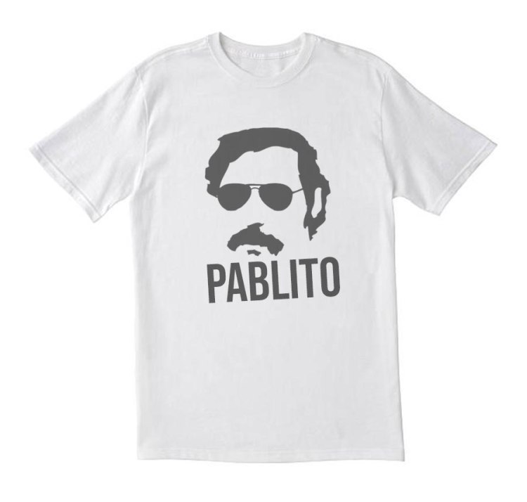 • Laisvalaikio marškinėliai vyrams su narkotikų barono Pablo Escobar siluetu.