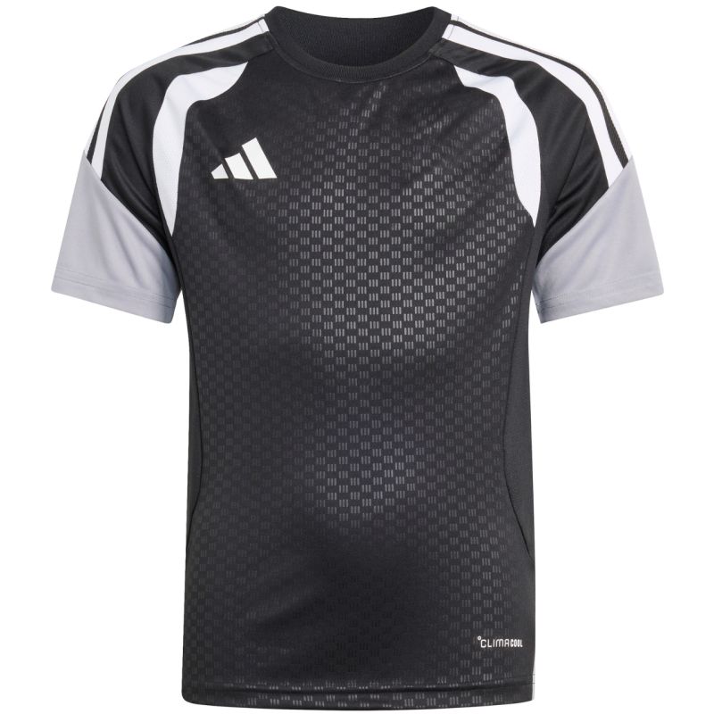 „adidas Tiro 26 Competition“ treniruočių marškinėliai, juodi ir pilki, KA7599. Šie „Adidas“ marškinėliai puikiai tinka treniruotėms ir lemiamoms rungtynėms. Įprastas kirpimas. Tinklinės detalės ant krūtinės. „Climacool“ technologija sugeria ir išgarina prakaitą. Perdirbti pluoštai. Subtilus logotipas. Juostelės ant rankovių. Medžiaga: 100 % perdirbtas poliesteris.