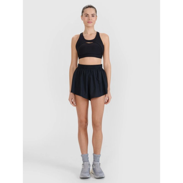 Greitai džiūstantys 4F moteriški treniruočių šortai puikiai tinka aktyvioms moterims, kurioms reikalingas funkcionalumas , patogumas ir minimalistinis stilius. Šie juodi šortai puikiai tinka intensyvioms treniruotėms , sporto salei ar kasdienei veiklai.