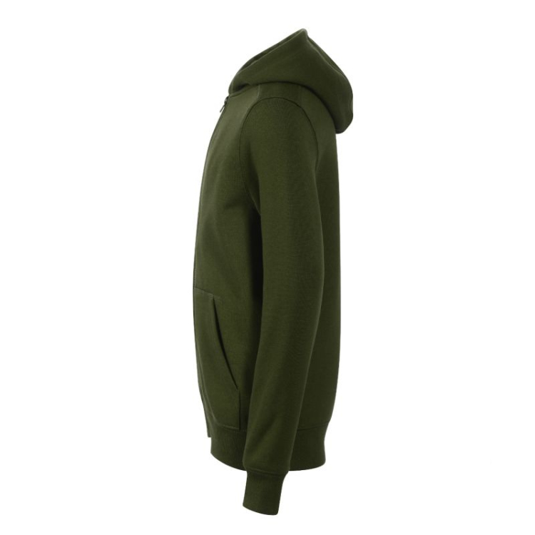 Kilpinis audinys, šukuotas viduje: 65 % medvilnės, 35 % poliesterio, tiesaus kirpimo su šoninėmis siūlėmis, užtrauktukas per visą kulkšnį, pamušalas be raištelio, kaklo apvadai, sutvirtinti kontrastinga juostele, kengūros kišenės, 2:2 briaunotas apatinis kraštas ir rankogaliai su 5 % elastano, šukuoti viduje.
