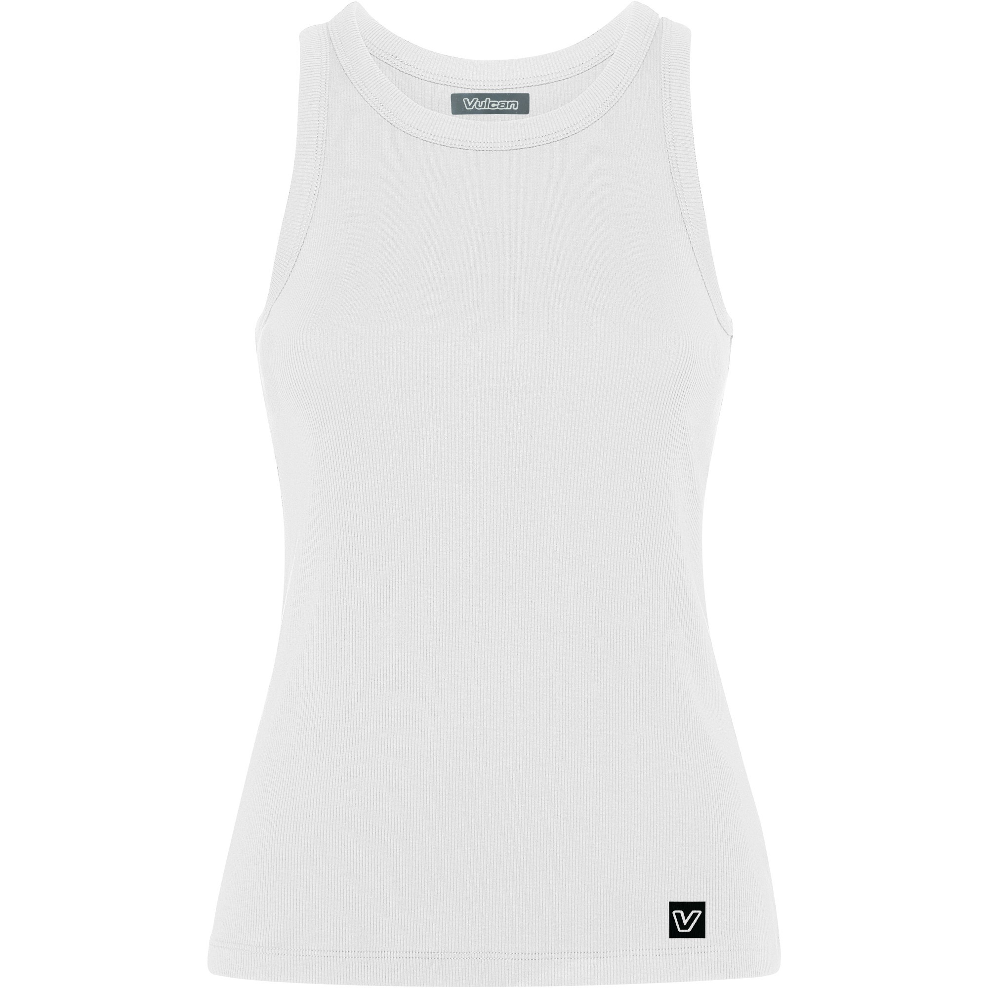 • Rib audinio moteriški marškinėliai be rankovių.